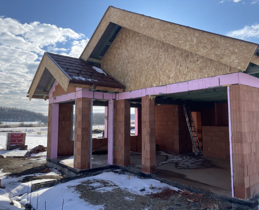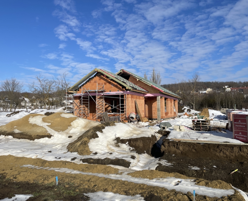 A 410 m²-es saját telekrészen elhelyezkedő ház modern, letisztult megjelenésű, téglaépítésű, 16 cm Austrotherm szigeteléssel ellátva – így egész évben optimális hőérzetet biztosít.