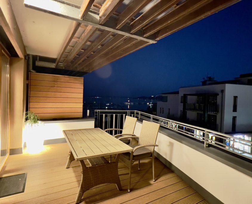 Valódi különlegességet a 16 m²-es, exkluzív terasz jelenti, ahonnan lenyűgöző balatoni panoráma tárul elénk – tökéletes helyszín reggeli kávézáshoz, esti borozáshoz vagy akár privát pihenéshez a víz közelségében.