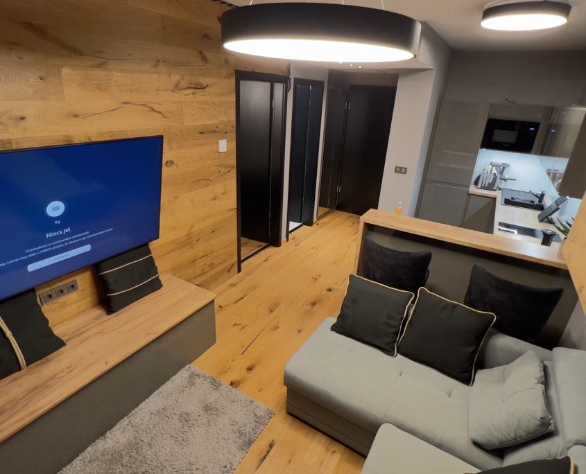 A 43 m²-es, kifinomult eleganciával berendezett lakás tökéletes harmóniát teremt a modern luxus és a balatoni életérzés között. Az ingatlan egy kényelmes hálószobával, stílusos fürdőszobával, valamint amerikai konyhás nappalival rendelkezik, ahol a letisztult design és a minőségi anyaghasználat dominál. A lakás teljes berendezéssel együtt eladó, így az új tulajdonos azonnal élvezheti a gondtalan, magas színvonalú életvitelt.