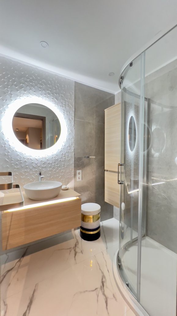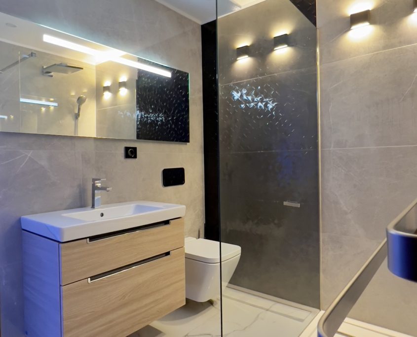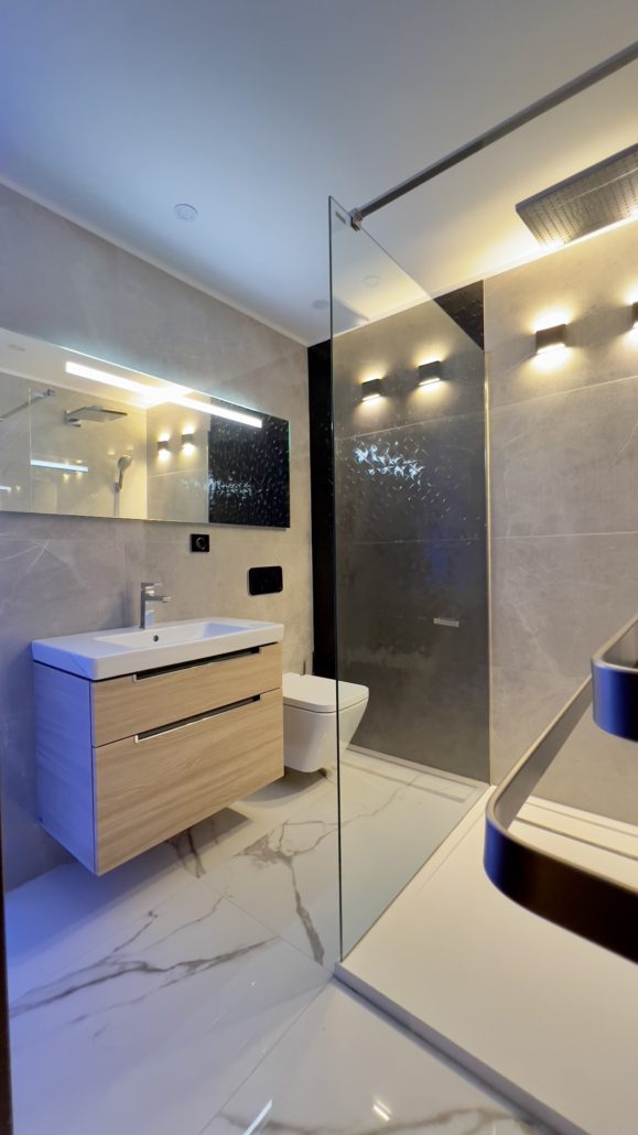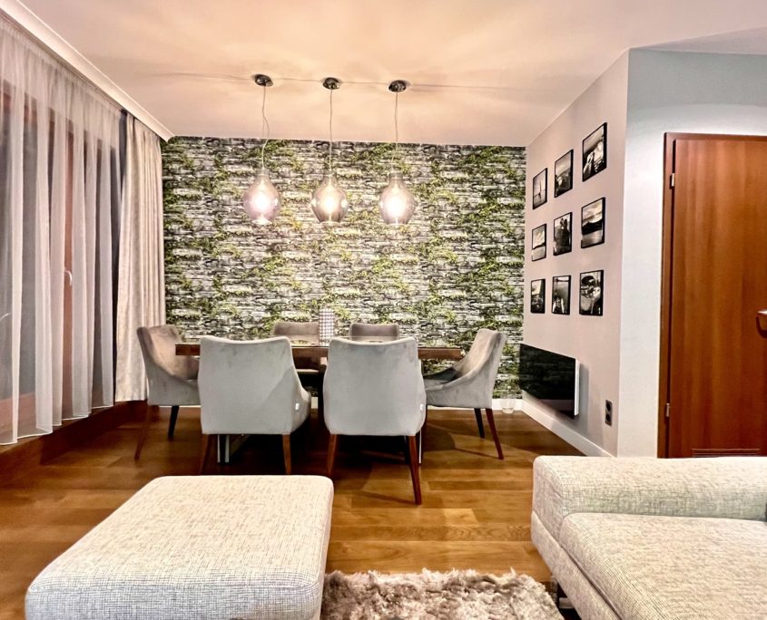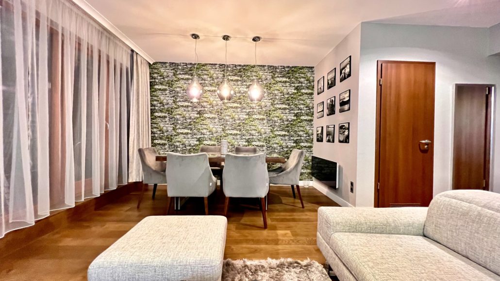 A 85 m²-es, teljeskörűen felújított ingatlan a modern elegancia és a magas szintű funkcionalitás tökéletes ötvözete. A tágas, napfényes nappali–étkező–konyha egy légtérben helyezkedik el, amely ideális közösségi térként szolgál, miközben két külön nyíló, ízlésesen kialakított hálószoba biztosítja a privát szférát. A lakás két exkluzív fürdőszobával rendelkezik, amelyekben a prémium minőségű Villeroy & Boch szaniterek és a letisztult design a luxus érzetét erősítik.