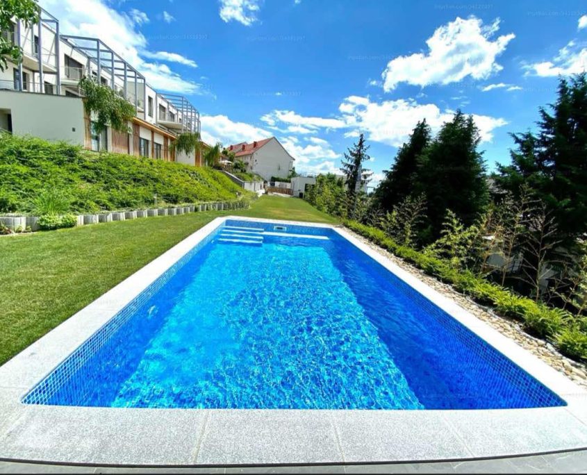 Közös költség: 45.000 Ft/hó, amely tartalmazza a ház üzemeltetését, kert- és medencekarbantartást, lift fenntartást, valamint a beállók és tárolók költségét is.