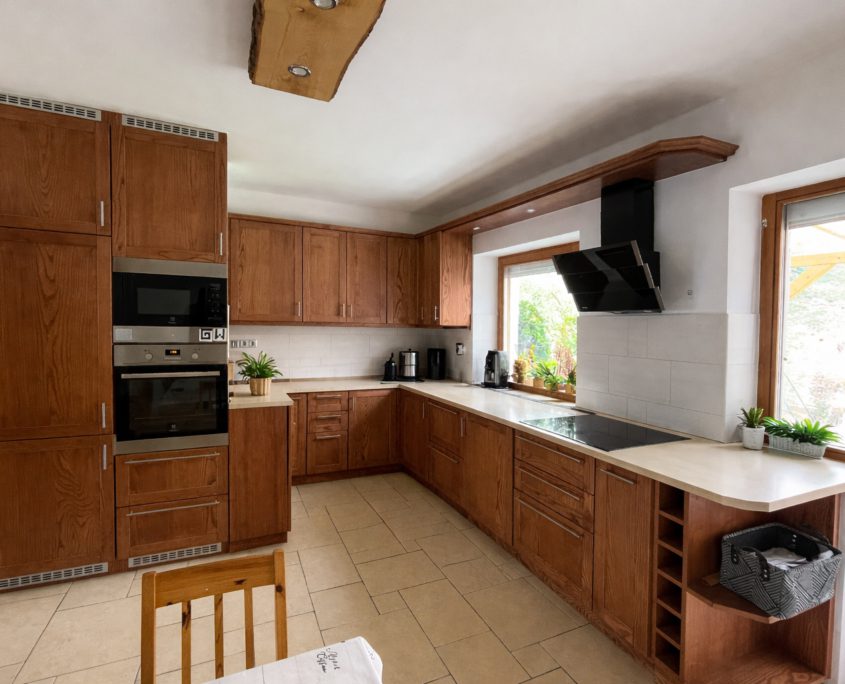 A felső szinten 4 kényelmes hálószoba és egy fürdőszoba biztosítja a család minden tagjának a saját életteret. Az otthon melegéről új gázkazán gondoskodik radiátoros hőleadással, amelyet egy hangulatos cserépkályha egészít ki. Továbbá egy korszerű, 5 kW-os napelemrendszer hozzájárul az alacsony fenntartási költségekhez, míg a központi porszívó a mindennapi kényelmet növeli.