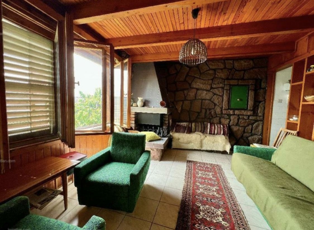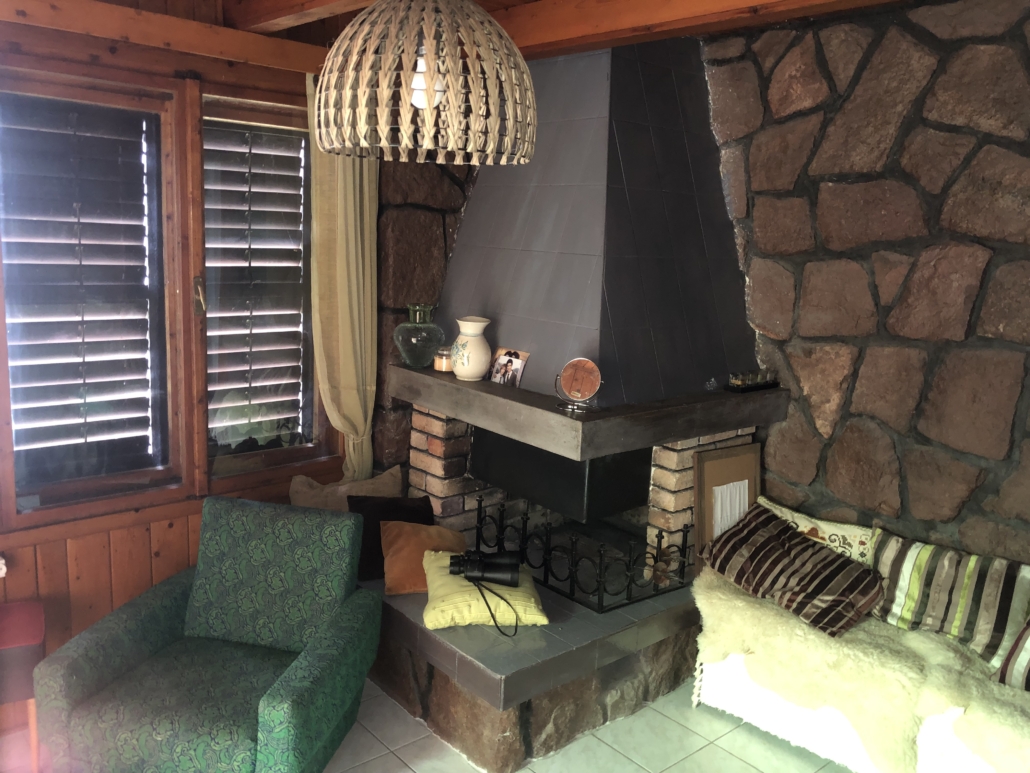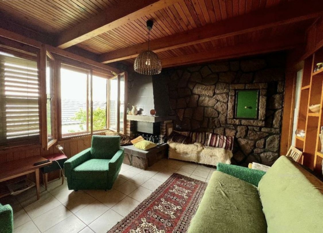 A felső szint könnyűszerkezetes, 10 cm-es szigeteléssel, így télen is lakható. Ezen a szinten kapott helyet egy hangulatos kandallóval a nappali, illetve a konyha, fürdő és hálószoba.