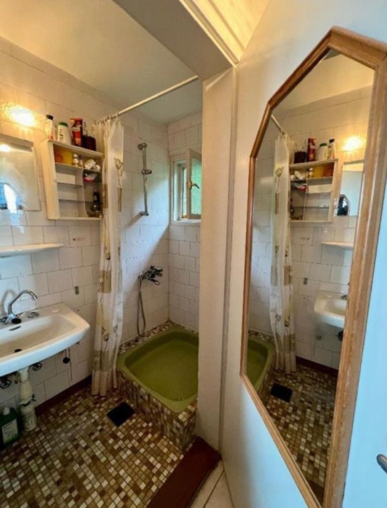 Az alsó szint masszív kőből épült, itt található egy szoba, wc és egy kis főzősarok.