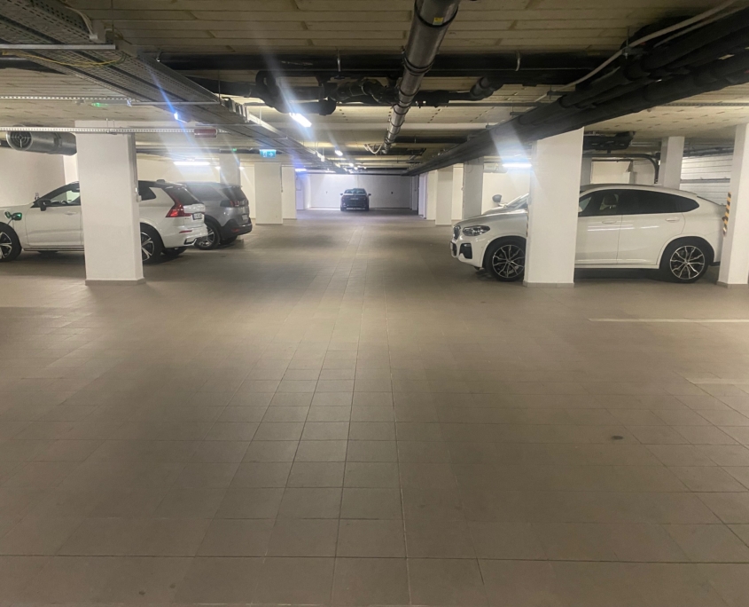 • Egy 1 állásos gépkocsibeálló a mélygarázsban