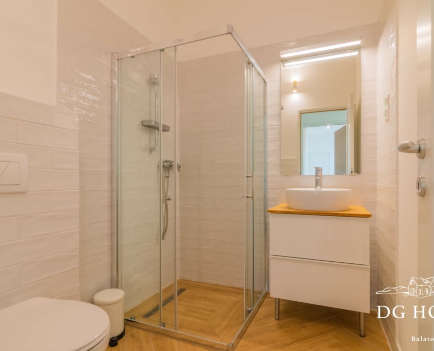• 2 tágas, balatoni panorámás hálószoba – mindkettő saját fürdőszobával és WC-vel
