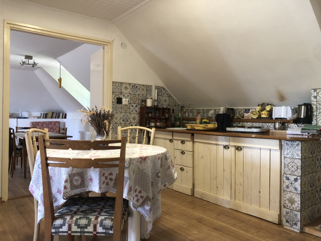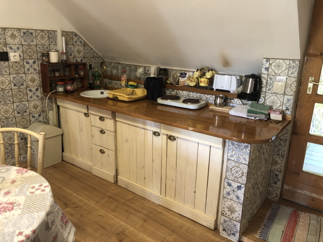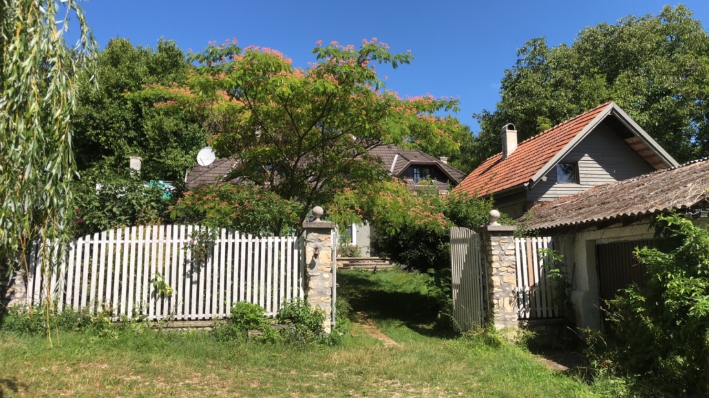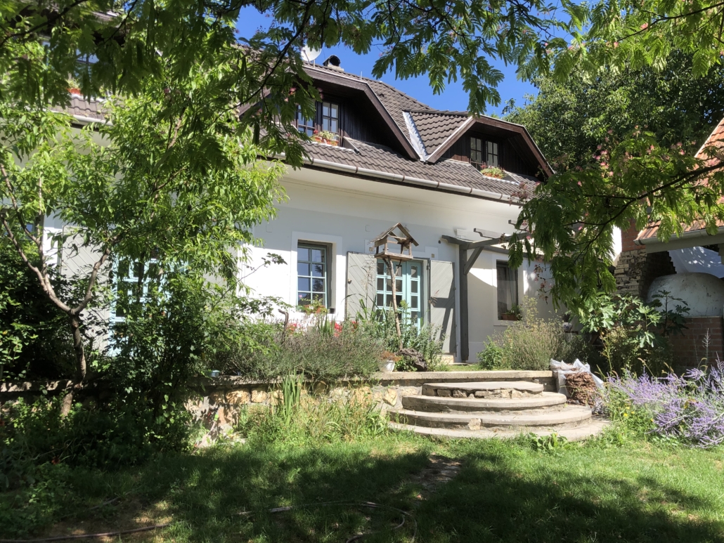 A ház a Balaton-felvidék egyik legbájosabb településén, Pécselyen a hegyoldalban fekszik, csupán 20 percre a Balatonparttól, mégis teljes nyugalomban, a csend és a zöld dombok ölelésében. Itt a patak csobogása és a madarak éneke az állandó háttérzene, a levegő pedig kristálytiszta